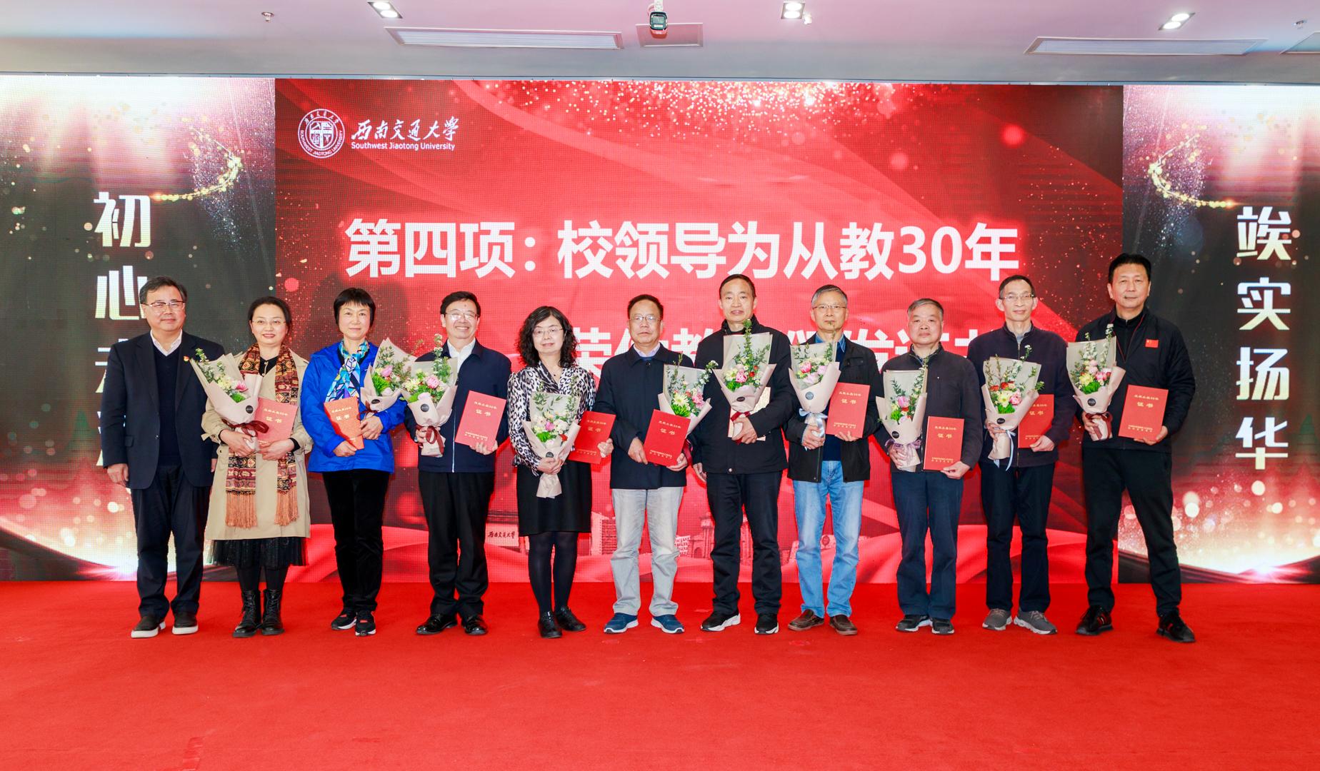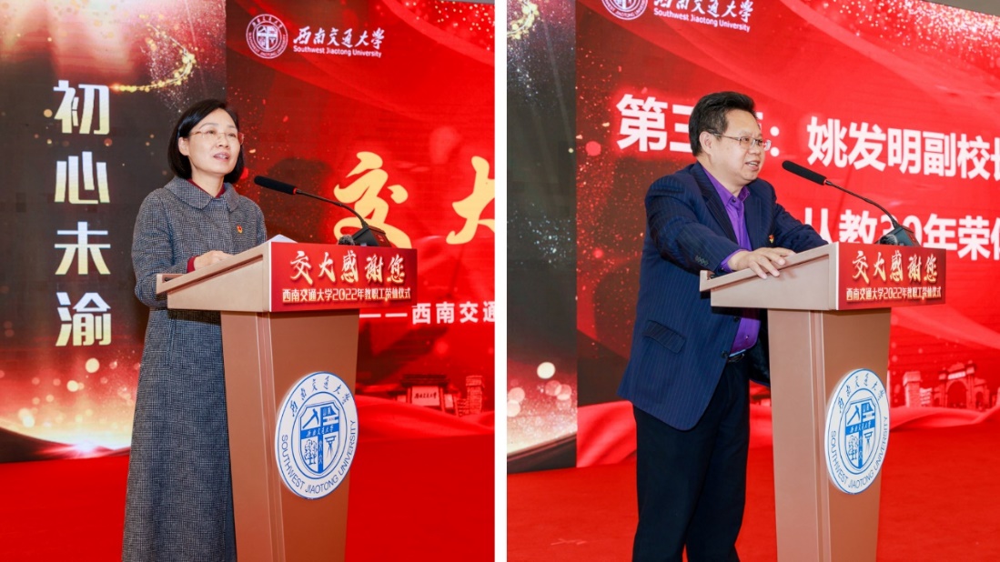 3月16日下午,学校2022年教职工荣休仪式于犀浦校区教职工餐厅举行,校党委书记王顺洪、副校长姚发明,相关职能部门负责同志,离退休工作联络员以及青年教师、学生代表出席仪式,共同见证55名2022年休教职工代表踏上人生又一段幸福之旅,并为2022年137名荣休教职工送上祝福。仪式由党委副书记杨爱华主持。