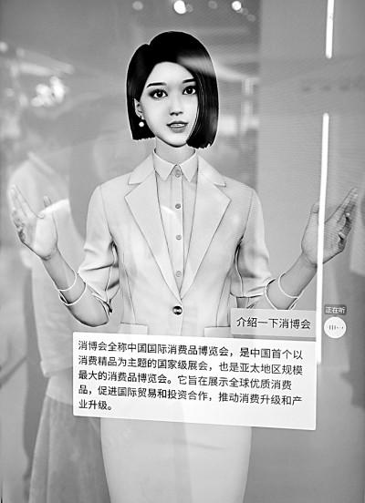 第四届消博会上,一款“AI数字人”在回答观众提问。新华社发