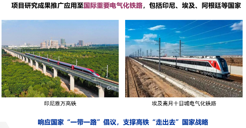 项目成果已经通过了国际铁路行业标准IRIS认证和中铁检验认证中心CRCC的权威认证,并成功应用于复兴号动车组、和谐系列电力机车,在京沪高铁、印尼雅万高铁等多条高速铁路线路上广泛装配。此外,该成果还被推广至“白鹤滩”水电站和巴西“美丽山”输变电工程等国内外重要工程项目中,产生了显著的社会和经济效益。