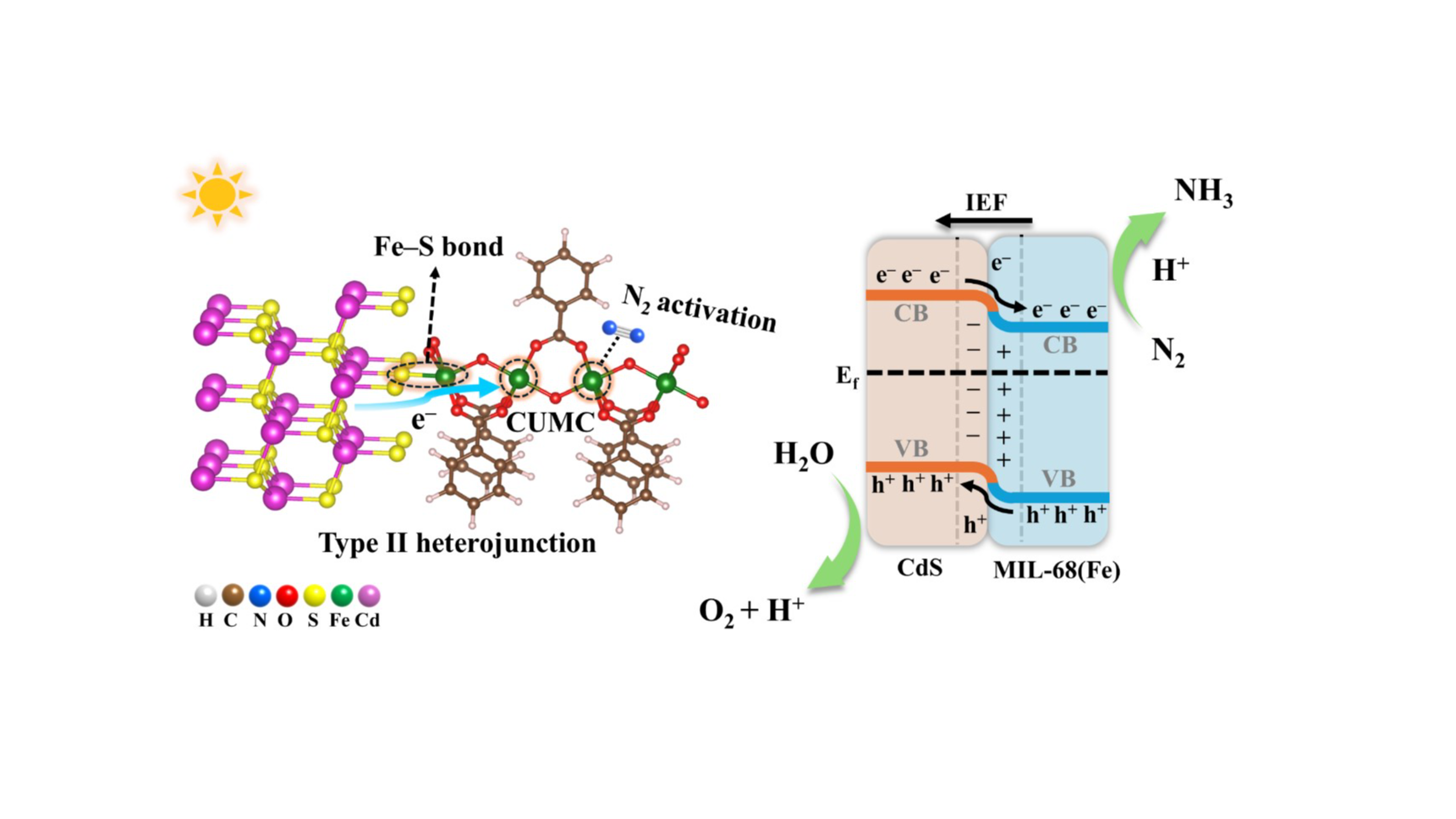 CdS/MIL-68(Fe) II型异质结仿生光催化固氮示意图