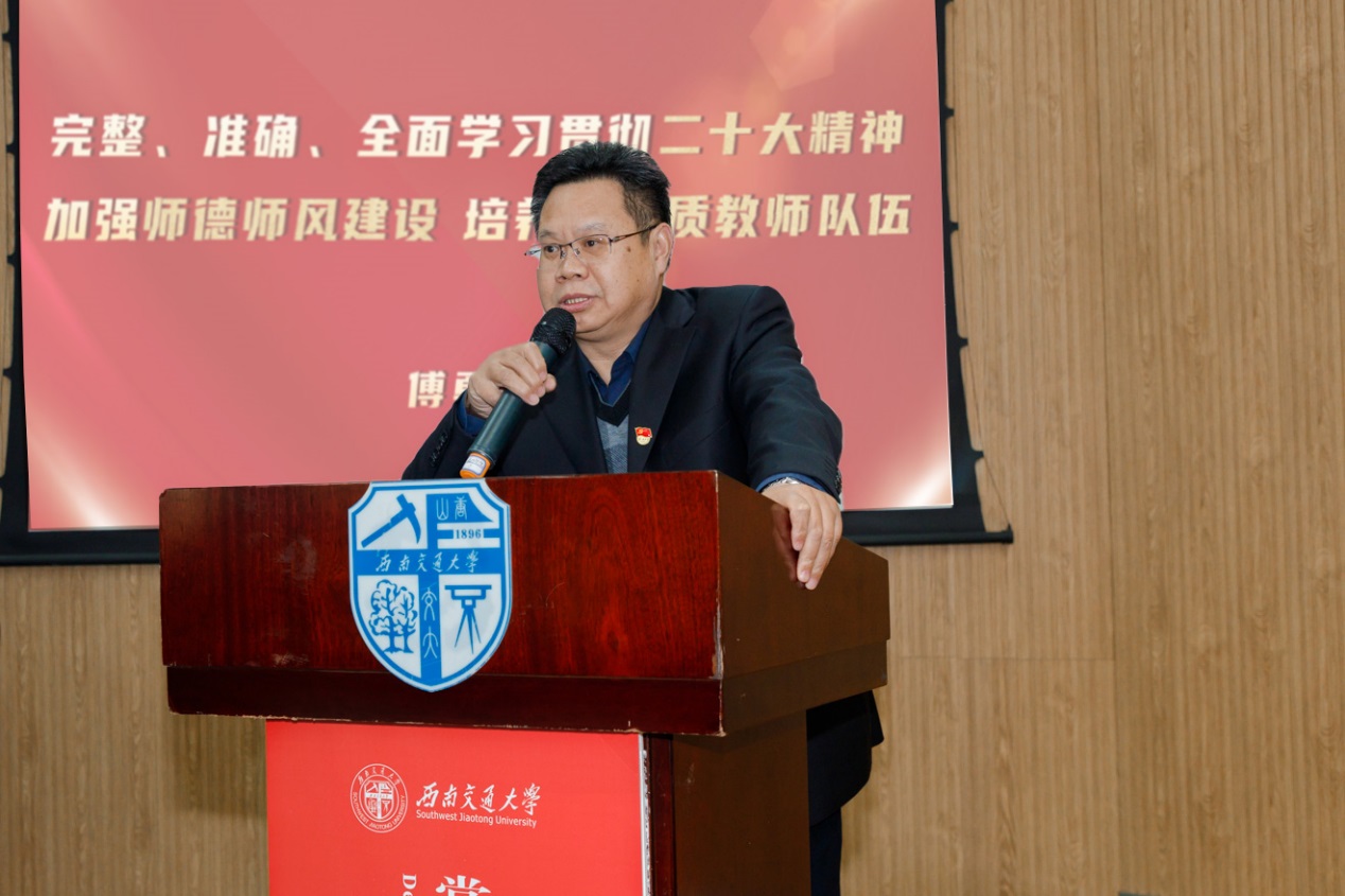 党委教师工作部(教师发展中心)、人才工作办公室、党委统战部举办的党的二十大精神学习暨师德师风大讲堂在犀浦校区8号教学楼A300多功能厅举行。