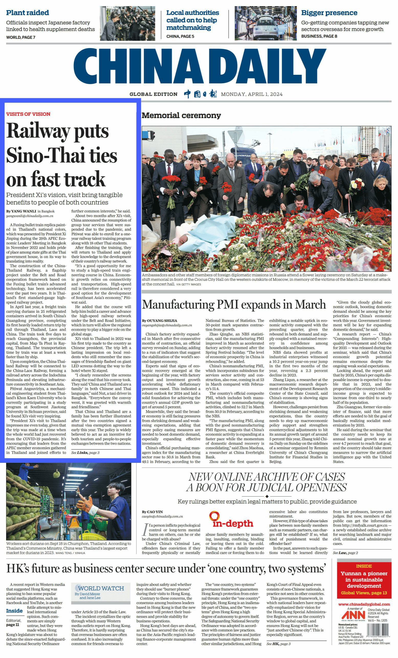 2024年4月1日,中国日报(China Daily)推出报道Railway puts Sino-Thai ties on fast track---President Xi’s vision, visit bring tangible benefits to people of both countries(铁路让中泰关系驶入快车道---习近平总书记的愿景为两国人民带来切实福祉)。中国日报记者采访了av麻豆