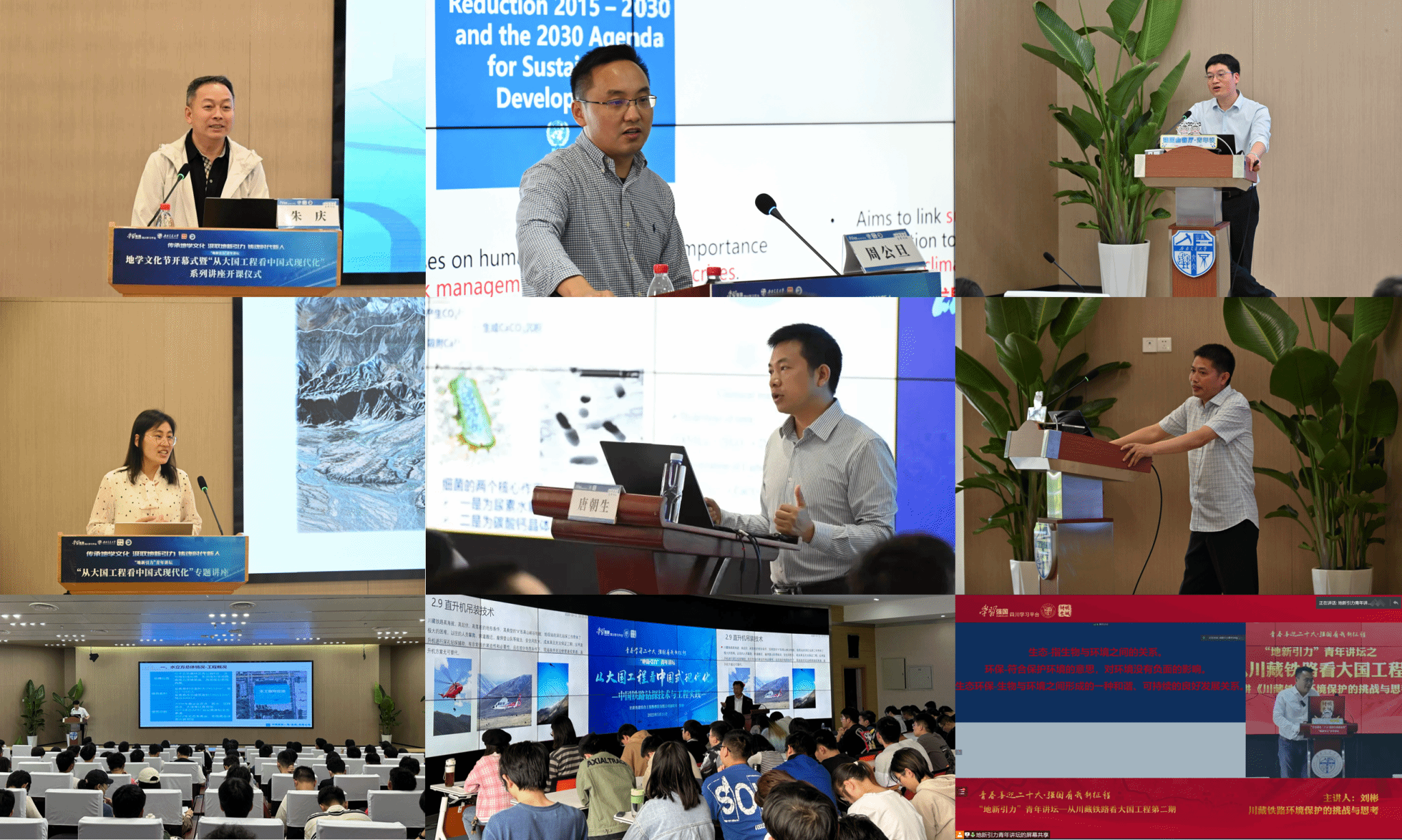 地学学院测绘系教授朱庆等数十位大国工程一线的专家、科研学者,围绕川藏铁路、冬奥场馆“冰立方”、数字孪生技术与防灾减灾等大国工程背后的工程、科研难题,结合自己切身经历,勉励广大青年练好身子骨,勇于向工程一线进军,用科技攻坚克难,敢于在民族复兴、强国建设中挺膺担当。