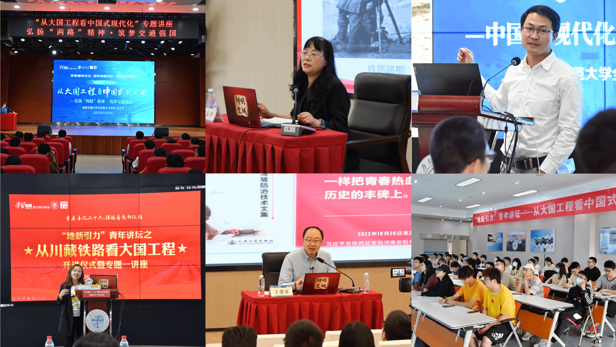 名师荟萃,坚守“赤子初心”,引领学生“立大志”。2019年至今,在党委学生工作部(学生工作处)、校团委、招生就业处等各部门的大力支持下,党委宣传部联合各二级单位举办“明诚讲堂”系列讲座共计36讲,辐射师生逾万余人次,全国高校思想政治工作网、光明日报、中国社会科学网、学习强国、中国大学生在线等主流媒体聚焦报道,社会影响广泛,育人成效显著。2021年,党委宣传部联合机关党委、马克思主义学院、机械学院、电气学院、交运学院、附属中学等举办党史学习教育专题报告会13讲;自2022年五四青年节前夕开始,联合地学学院,连续三年开展“从川藏铁路看大国工程”“从大国工程看中国式现代化”等大国工程系列明诚讲堂19讲,引导青年一代在大国工程一线受教育、长才干、做贡献;2022年,为提升网评员队伍工作水平,党委宣传部邀请中共四川省委宣讲团专家库成员龚丽萍副教授来校,开展舆情处置应对专题讲座;邀请四川省公安厅舆论引导实战教官张学勤教授来校,作专题辅导报告,提升各级党委的媒介素养;2024年4月,联合电气学院举办“最美铁路人”先进事迹巡回报告会;2024年5月,为丰富师生校园文化生活,提升广大师生的审美和人文素养,学校特邀扬州市古琴研究会于知文会长,开展“西南问道‘蜀’琴声”主题讲座……专家云集、名师荟萃,“明诚讲堂”用青春能动力和创造力激荡起强国建设、民族复兴的澎湃春潮。