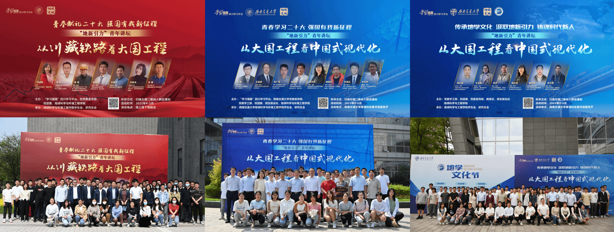 川藏铁路开工建设、双奥之城永载史册、中老铁路绽放友谊之花,青藏高原第二次科考、“一带一路”建设……“地学文化节”闭幕式暨“地球科技月”颁奖仪式近日在犀浦校区举行。作为文化节的重头戏,党委宣传部联合地学学院已连续举办三年的明诚讲堂系列讲座得到师生纷纷点赞。这只是学校深入学习贯彻习近平新时代中国特色社会主义思想,擦亮“明诚讲堂”品牌,引领广大青年学生将小我融入大我,以青春实践奉献祖国,以文化的力量筑魂育人的缩影。