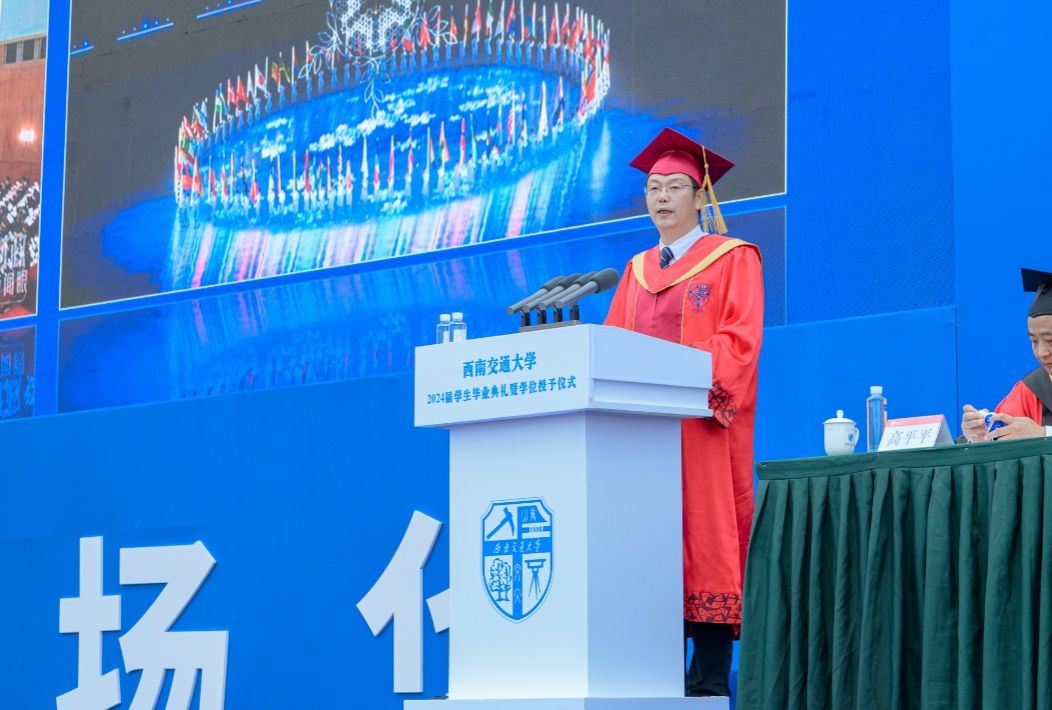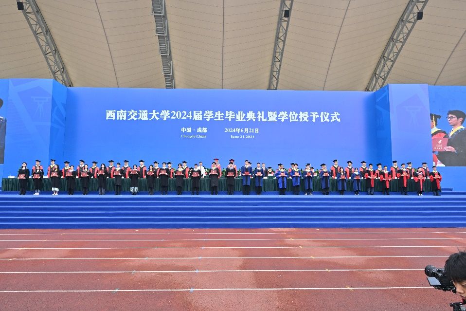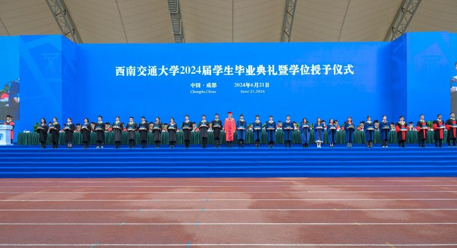 2024届学生毕业典礼暨学位授予仪式在犀浦校区北区体育场举行。校党委书记余敏明,校长、校学位评定委员会主席闫学东,教育部党建工作联络员石坚,中国科学院院士、校学位评定委员会副主席翟婉明,中国工程院院士、校学位评定委员会副主席何川,全体在校校领导,相关职能部处、各学院(中心、实验室)负责人出席典礼,教师代表、全体2024届毕业生参加典礼。典礼由校党委副书记高平平主持。